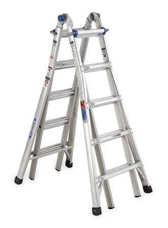 Multipurpose Ladder, Telescoping, MT Series, Ladder Height 22 ft., Extended Ladder Height 11 to 19 ft., Stepladder Height 5 to 9 ft., Storage Height 5-1/2 ft., Scaffold Height 1 to 4 ft., Load Capacity 300 lb., ANSI Type IA, Aluminum, Standards ANSI Type 1A, -, Includes Instruction Manual